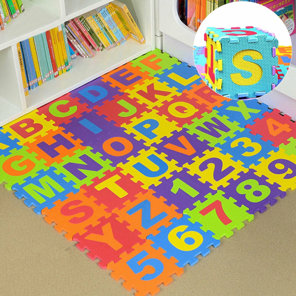 36 Eva Foam Alphabet A B C Floor Mat Tiles A Z 0 9 36ft Sq Safety Baby Puzzle 755263318453 Ebay